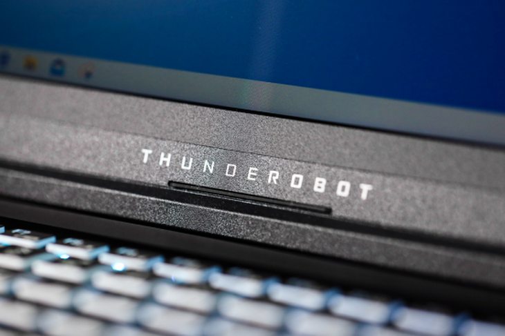 雷神在顶部极窄的边框中还是融入了一颗摄像头,底部也换上了雷神的新LOGO,更显沉稳。