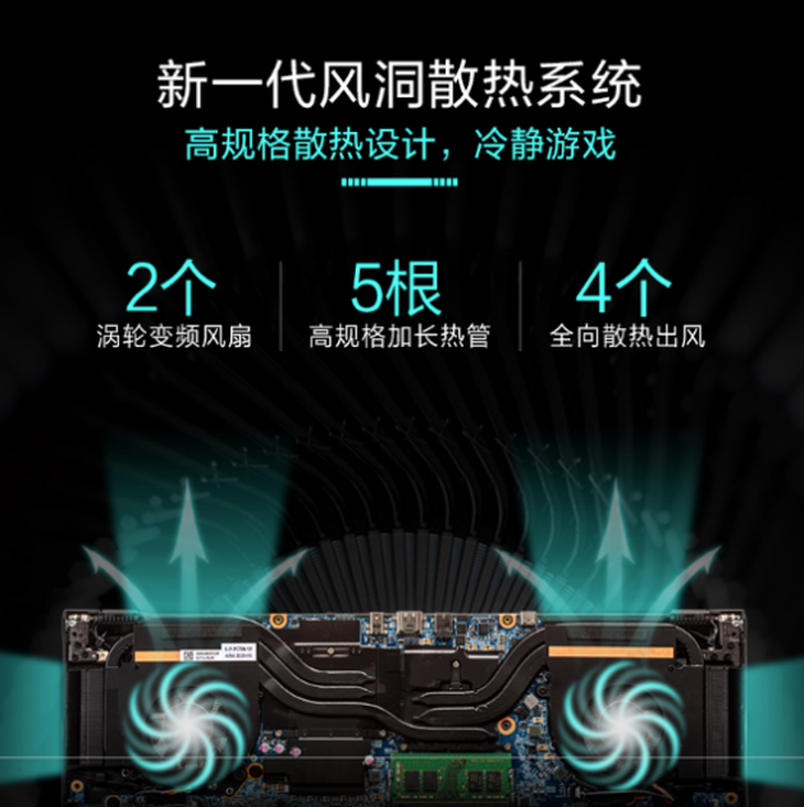 机身左右两侧、后部以及底部的大面积散热孔,采用双风扇+五热管+四出风口的设计,在C面的屏幕下方还有一个很长的辅助出风口更保障了强大性能不会被温度封印。